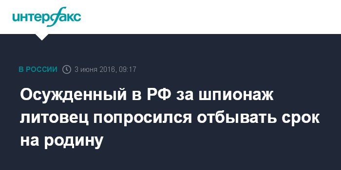 Как сообщил в пятницу пресс-секретарь министерства юстиции Литвы Аудрис Кутрявичюс, ведомство, получившее просьбу осужденного, попросило российскую сторону передать его Литве "для дальнейшего исполнения наказания".