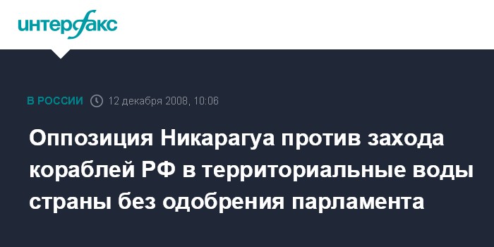Москва. 12 декабря. INTERFAX.RU - Никарагуанская оппозиция выступает с предупреждением о том, что три российских корабля не могут зайти в территориальные воды страны, если этот заход не будет одобрен национальным собранием (парламентом).