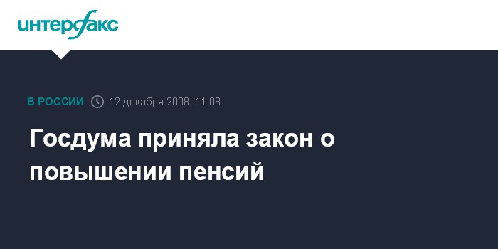 Москва. 12 декабря. INTERFAX.RU - Госдума на пленарном заседании в пятницу приняла в третьем чтении закон "О внесении изменений в отдельные законодательные акты РФ в целях повышения уровня материального обеспечения отдельных категорий граждан".