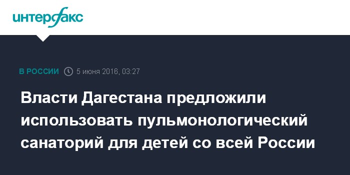 Власти Дагестана предложили использовать пульмонологический санаторий для детей со всей России