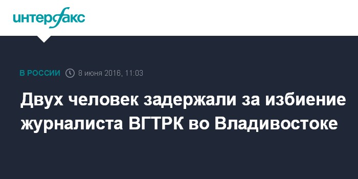 Москва. 8 июня. INTERFAX.RU - В Приморье задержали двух подозреваемых в избиении журналиста телеканала "Россия 1" (ВГТРК), сообщает в среду региональное управление СК РФ.