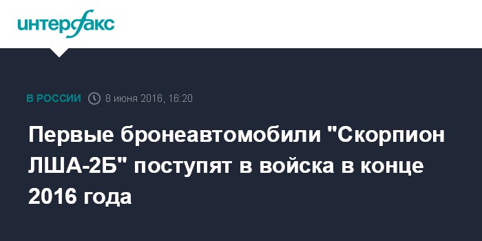 Москва. 8 июня. INTERFAX.RU - Бронированные машины "Скорпион ЛША-2Б" (ЛША - легкий штурмовой автомобиль) начнут поступать в Сухопутные войска в конце 2016 года, сообщил "Интерфаксу" генеральный директор корпорации "Защита" Сергей Старун.