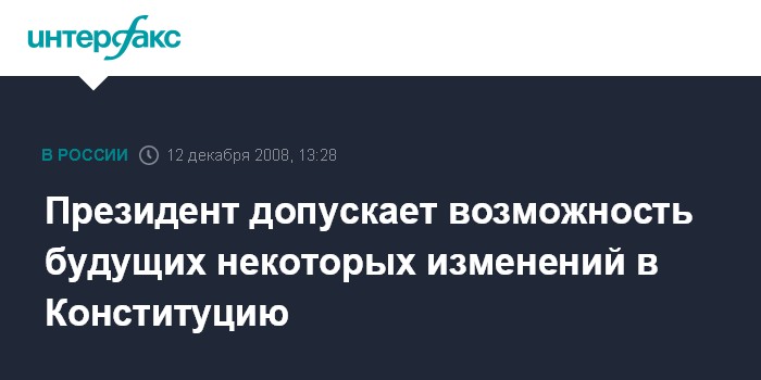 Москва. 12 декабря. INTERFAX.RU - Президент РФ Дмитрий Медведев считает, что в будущем возможны определенные изменения в российской Конституции.