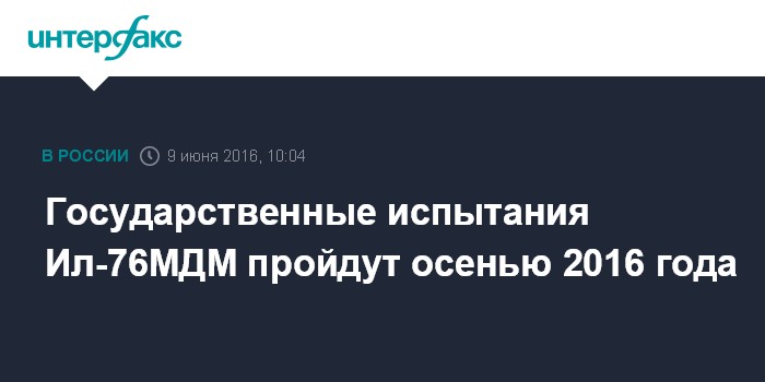 Москва. 9 июня. INTERFAX.RU - Государственные испытания первого модернизированного тяжелого военно-транспортного самолета Ил-76МДМ планируется начать осенью этого года, сообщил "Интерфаксу" заместитель генерального директора по управлению программами ОАО "Ил" Сергей Артюхов.