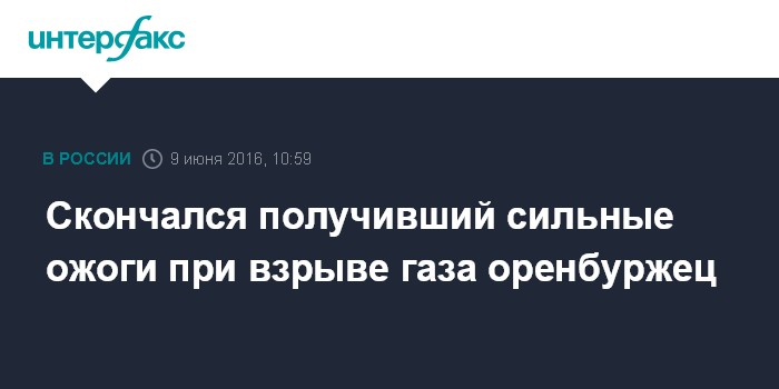 Москва. 9 июня. INTERFAX.RU - Пострадавший при взрыве бытового газа в оренбургской многоэтажке мужчина в четверг утром скончался в реанимационном отделении больницы, сообщил сайт регионального управления СКР.