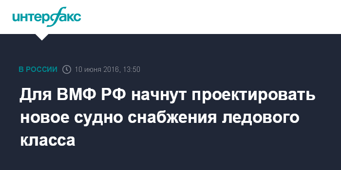 Москва. 10 июня. INTERFAX.RU -Проектирование нового судна снабжения ледового класса для ВМФ РФ начнется в ближайшей перспективе, сообщил начальник технического управления ВМФ РФ Игорь Зварич журналистам в пятницу в Петербурге.