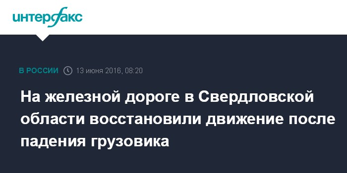 Москва. 13 июня. INTERFAX.RU - На железнодорожный путях, пересекающих 60-й километр автодороги Екатеринбург - Реж - Алапаевск, восстановлено движение после падения грузового автомобиля с моста, сообщило в понедельник Главное управление МЧС России по региону.