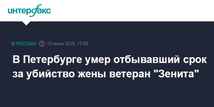 В Петербурге умер отбывавший срок за убийство жены ветеран "Зенита"