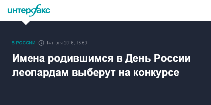 Вице-премьер выступил с инициативой организовать конкурс на выбор имен для животных. "Считаю, что раз такое важное событие произошло именно в День России, жители нашей страны должны иметь возможность поучаствовать в выборе имен для новорожденных леопардов", - сказал Хлопонин.