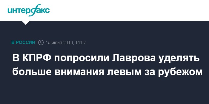 Москва. 15 июня. INTERFAX.RU - В КПРФ попросили главу МИД РФ Сергея Лаврова в международных контактах больше обращать внимание на представителей левых партий.