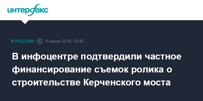 "На производство роликов про мост через Керченский пролив и другой публичной информационной деятельности не используются ни средства госконтракта, ни какое-либо другое бюджетное финансирование. Это четкая позиция. Вся наша работа - исключительно за счёт частных средств", - заявил "Интерфаксу" представитель инфоцентра.