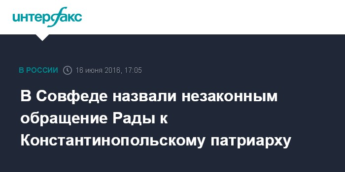 В Совфеде назвали незаконным обращение Рады к Константинопольскому патриарху