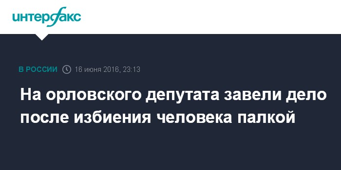 Москва. 16 июня. INTERFAX.RU - Следственные органы Орловской области возбудили уголовное дело о причинения вреда здоровью средней тяжести против депутата Колпнянского районного Совета народных депутатов Александра Бабенкова, говорится в сообщении на сайте областного СУ СКР.