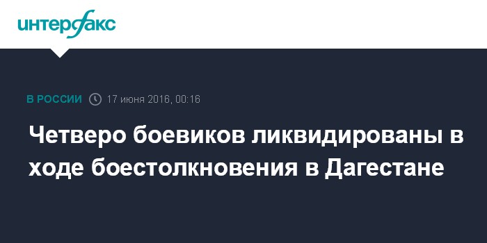Москва. 17 июня. INTERFAX.RU - Сотрудники федеральных сил уничтожили, по предварительным данным, четверых боевиков в ходе спецоперации в Сулейман-Стальском районе Дагестана, сообщили "Интерфаксу" в силовых структурах региона.