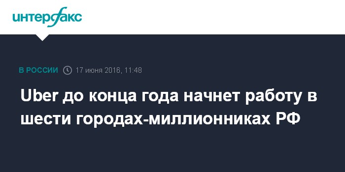 Москва. 17 июня. INTERFAX.RU - Сервис заказа такси Uber в 2016 году планирует начать работу в шести российских городах-миллионниках - в Челябинске, Перми, Омске, Самаре, Волгограде и Воронеже, сообщила "Интерфаксу" генеральный менеджер по региональному развитию Uber в России Ирина Рейдер.
