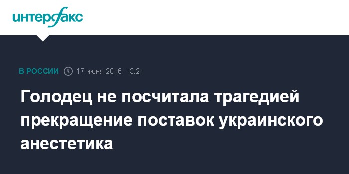 Голодец не посчитала трагедией прекращение поставок украинского анестетика