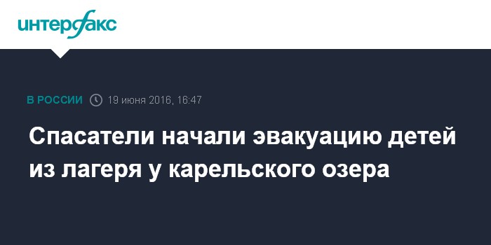 Москва. 19 июня. INTERFAX.RU - Спасатели эвакуирую еще 25 детей, оставшихся в лагере на озере Сямозеро, сообщается на официальном портале правительства республики.