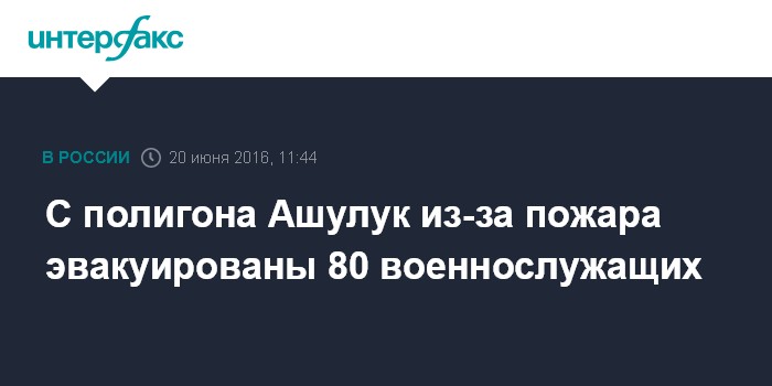 Москва. 20 июня. INTERFAX.RU - Несколько десятков военнослужащих эвакуированы с полигона Ашулук в Астраханской области, где в понедельник загорелся склад со стартовыми двигателями ракет, сообщил "Интерфаксу" источник в экстренных службах.