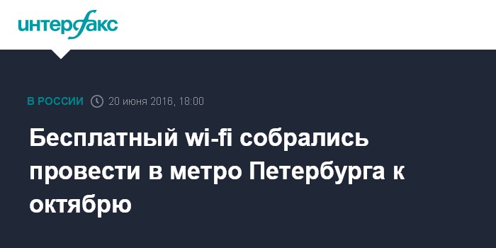 Москва. 20 июня. INTERFAX.RU - Бесплатный wi-fi-доступ в интернет может появиться в метро Петербурга к октябрю текущего года, сообщила в понедельник пресс-служба вице-губернатора северной столицы Игоря Албина.