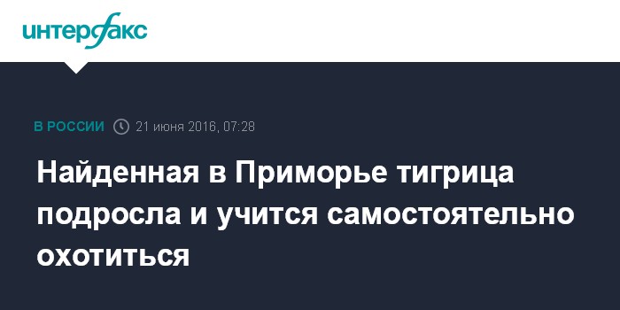 Москва. 21 июня. INTERFAX.RU - Тигрица Филиппа, спасенная в Приморье в декабре прошлого года, начинает учиться самостоятельно охотиться в Центре реабилитации и реинтродукции тигров в селе Алексеевка.
