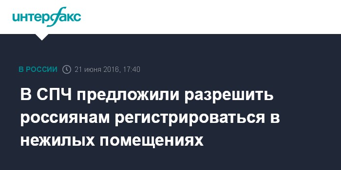 Москва. 21 июня. INTERFAX.RU - В Совете при президенте РФ по развитию гражданского общества и правам человека предлагают разрешить гражданам страны регистрироваться в нежилых помещениях, а также по адресу работодателя.