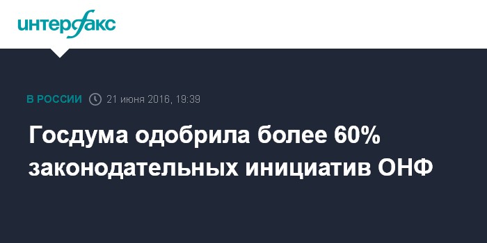 Госдума одобрила более 60% законодательных инициатив ОНФ