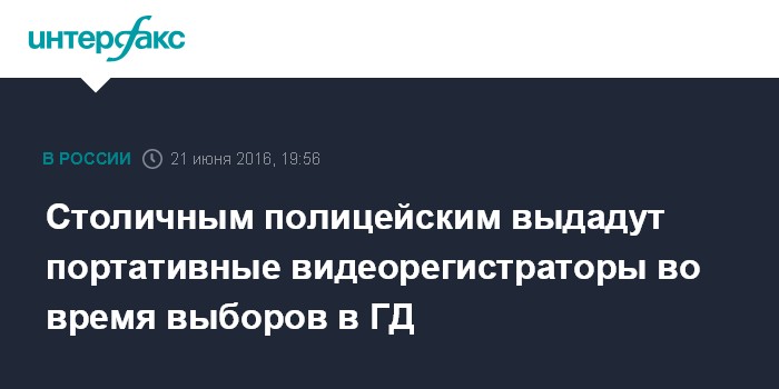Москва. 21 июня. INTERFAX.RU - Сотрудники полиции на предстоящих выборах в Госдуму будут снабжены портативными видеорегистраторами, говорится в сообщении пресс-службы Центризбиркома, размещенном на сайте организации во вторник .