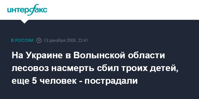 На Украине в Волынской области лесовоз насмерть сбил троих детей, еще 5 человек - пострадали