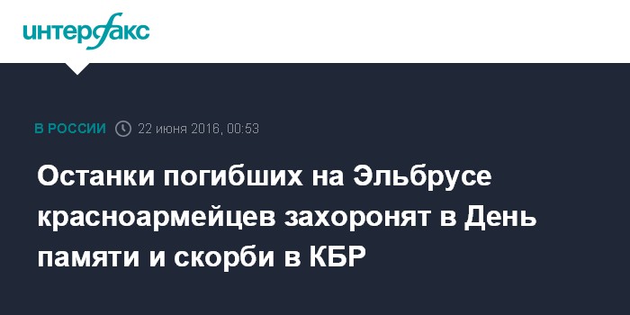 "У Мемориального комплекса в поселке Терскол 22 июня пройдет захоронение обнаруженных поисковиками останков 31 героя "Заоблачного фронта" Великой Отечественной войны и церемония зажжения Вечного огня", - говорится в сообщении.