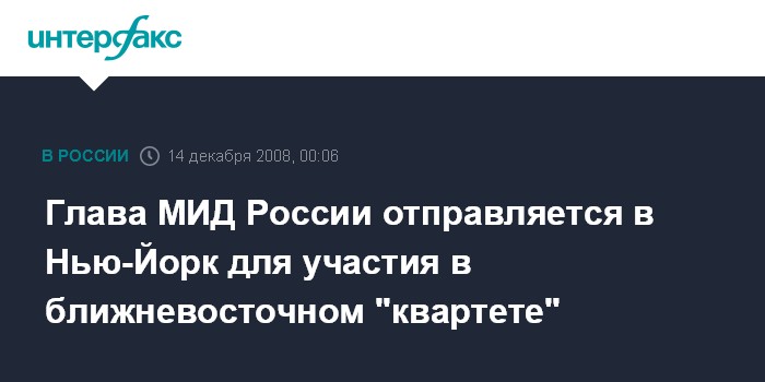 Глава МИД России отправляется в Нью-Йорк для участия в ближневосточном "квартете"