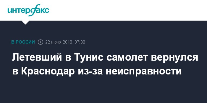 "Во вторник самолет Boeing 757-200 авиакомпании Azur Air, выполнявший чартерный рейс из Краснодара в Энфиду (Тунис), совершил разворот над Черным морем и вернулся для проверки неисправности, возникшей во время полета. На борту лайнера находились 240 человек", - сказал представитель пресс-службы.