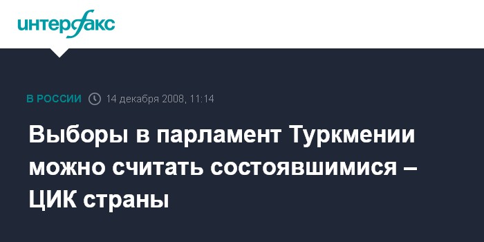 Ашхабад. 14 декабря. INTERFAX.RU - В соответствии с действующим законодательством Туркмении выборы депутатов парламента можно считать состоявшимися, сообщили в Центральной комиссии по проведению выборов и референдумов в республике.