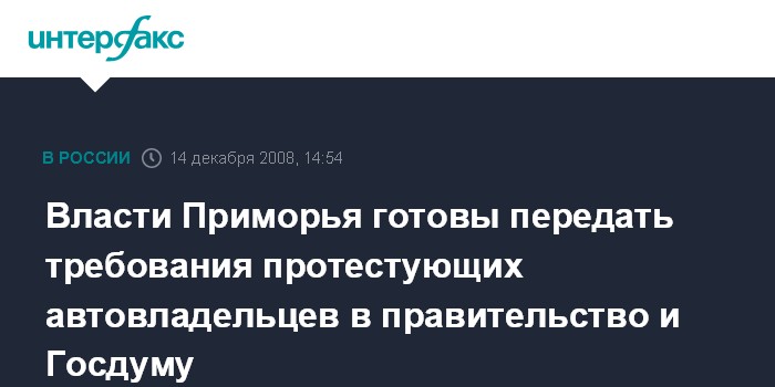 Владивосток. 14 декабря. INTERFAX.RU - Власти Приморья пообещали участникам массовой акции протеста против повышения пошлин на иномарки передать все их требования руководству страны.