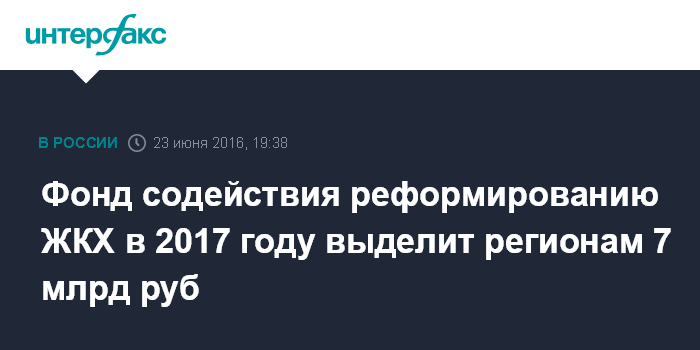 Фонд содействия реформированию ЖКХ в 2017 году выделит регионам 7 млрд руб