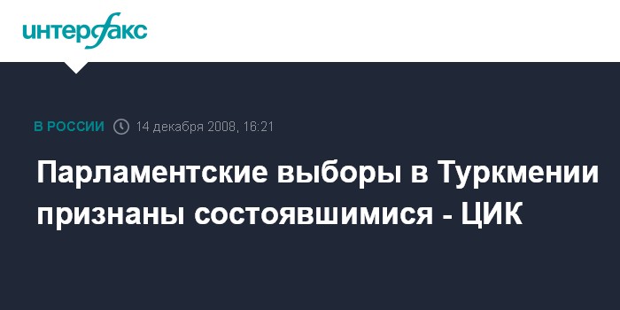 "Парламентские выборы признаны состоявшимися, результаты голосования будут обнародованы в самое ближайшее время", - сообщили в Центральной комиссии по проведению выборов и референдумов в Туркмении.