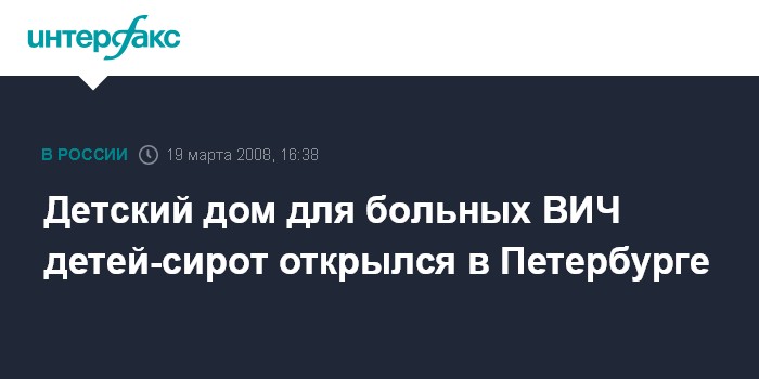 Санкт-Петербург. 19 марта. INTERFAX.RU - В Петербурге в среду открылся детский дом для детей-сирот, больных ВИЧ.