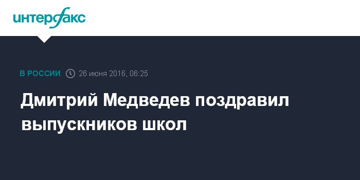 Москва. 26 июня. INTERFAX.RU - Премьер-министр России Дмитрий Медведев поздравил с окончанием выпускников школ по всей России на своей странице в социальной сети Instagram.