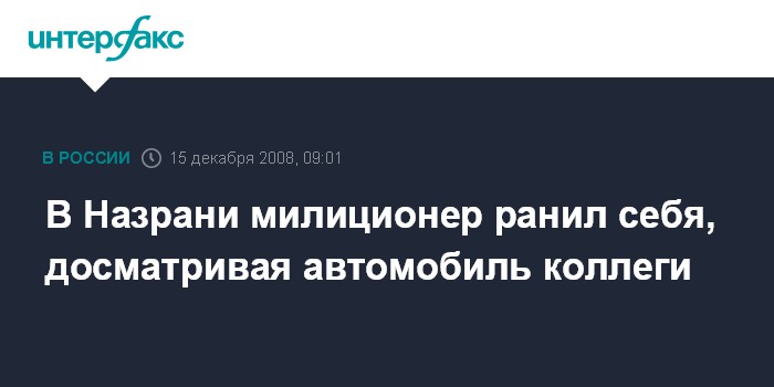 Москва. 15 декабря. INTERFAX.RU - В Центральном муниципальном округе Назрани милиционер оперативного полка по охране административной границы получил ранение при досмотре автомашины офицера МВД Ингушетии.