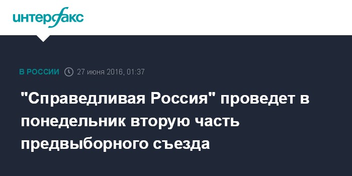 Москва. 27 июня. INTERFAX.RU - Партия "Справедливая Россия" проведет в понедельник вторую часть предвыборного съезда, на которой утвердит предвыборную программу и списки своих кандидатов.