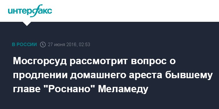 Мосгорсуд рассмотрит вопрос о продлении домашнего ареста бывшему главе "Роснано" Меламеду