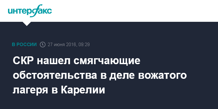 СКР нашел смягчающие обстоятельства в деле вожатого лагеря в Карелии