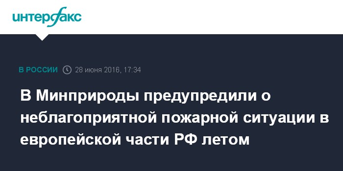 Москва. 28 июня. INTERFAX.RU - Министр природных ресурсов и экологии РФ Сергей Донской потребовал взять на особый контроль профилактику лесных пожаров в регионах европейской России в связи с неблагоприятным прогнозом на июль и август.