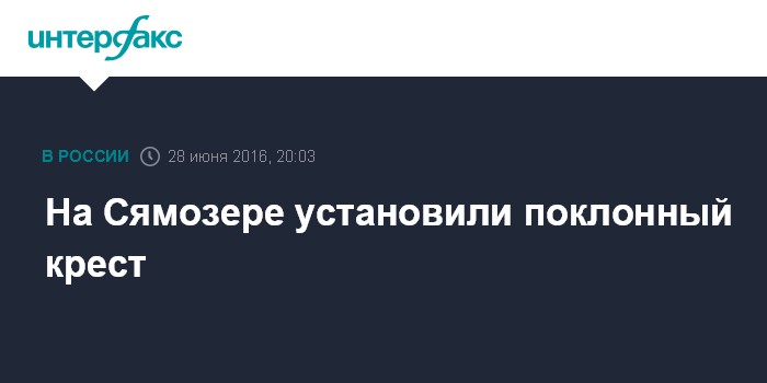 Москва. 28 июня. INTERFAX.RU - В Карелии в память о 14 детях, погибших во время шторма на Сямозере, установили поклонный крест и табличку с именами погибших, сообщила пресс-секретарь главы республики Марина Кабатюк.
