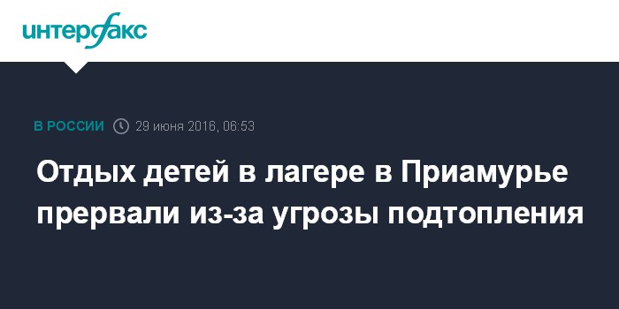 Москва. 29 июня. INTERFAX.RU - Около сотни детей вывозят из оздоровительного лагеря "Красный Яр" в Амурской области из-за угрозы подтопления, сообщает региональное ГУ МЧС России.