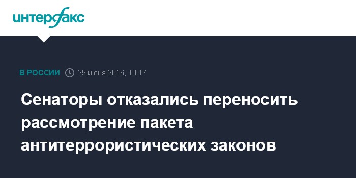 Сенаторы отказались переносить рассмотрение пакета антитеррористических законов