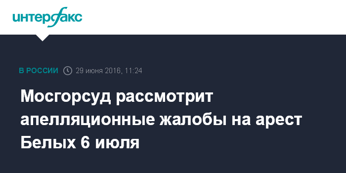 Мосгорсуд рассмотрит апелляционные жалобы на арест Белых 6 июля