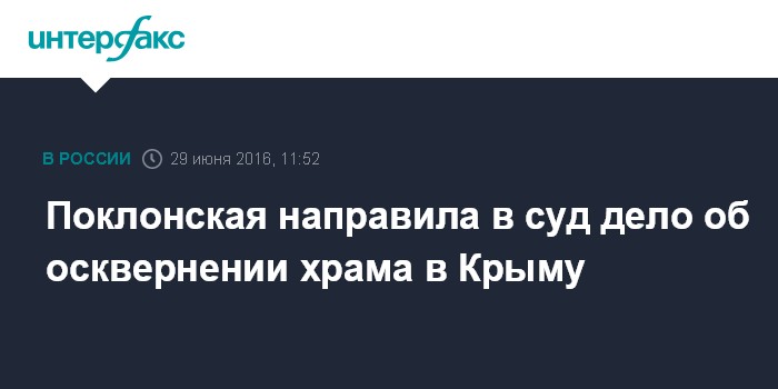 Москва. 29 июня. INTERFAX.RU - Прокурор Крыма Наталья Поклонская направила в Киевский райсуд Симферополя уголовное дело об осквернении храма экстремистскими надписями, сообщила в среду пресс-служба прокуратуры республики.
