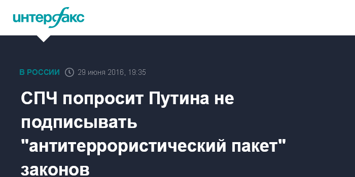 В среду Совет Федерации одобрил принятый на прошлой неделе Госдумой "антитеррористический пакет" поправок, которые в том числе обязывают операторов связи хранить переписку и переговоры пользователей в течение полугода. Другой закон пакета вводит уголовную ответственность за международный террористический акт и наказание за публичные призывы к насильственному свержению власти и нападению на посольства. Также вводится новый состав преступления - несообщение о преступлении террористической направленности.