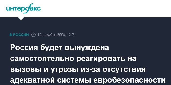 Россия будет вынуждена самостоятельно реагировать на вызовы и угрозы из-за отсутствия адекватной системы евробезопасности