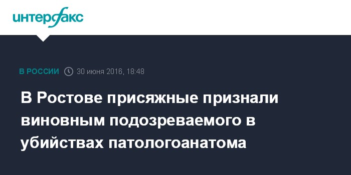 Москва. 30 июня. INTERFAX.RU - Коллегия присяжных заседателей на заседании в четверг в Ростовском областном суде вынесла обвинительный вердикт патологоанатому Николаю Кузьменко, обвиняемому в убийствах при помощи огнестрельного оружия и самодельного взрывного устройства.